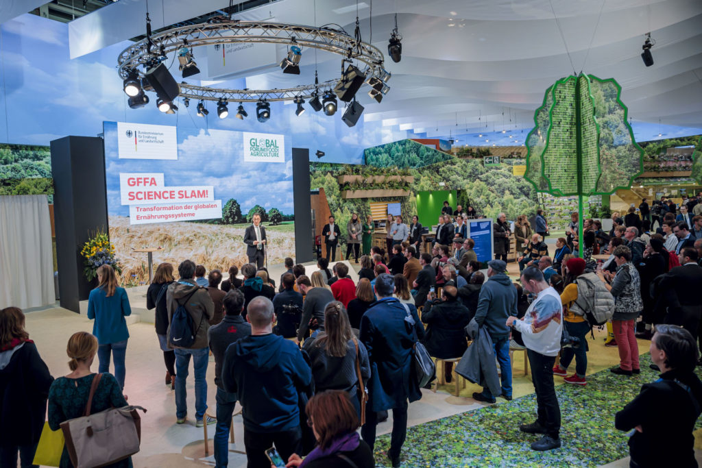 The GFFA Science Slam on the GFFA’s main subject will also take place in the BMEL’s exhibition hall during the International Green Week (IGW). A science slam is a science flash talk competition where scientists, within a specified time, present their research topics to a mixed audience.