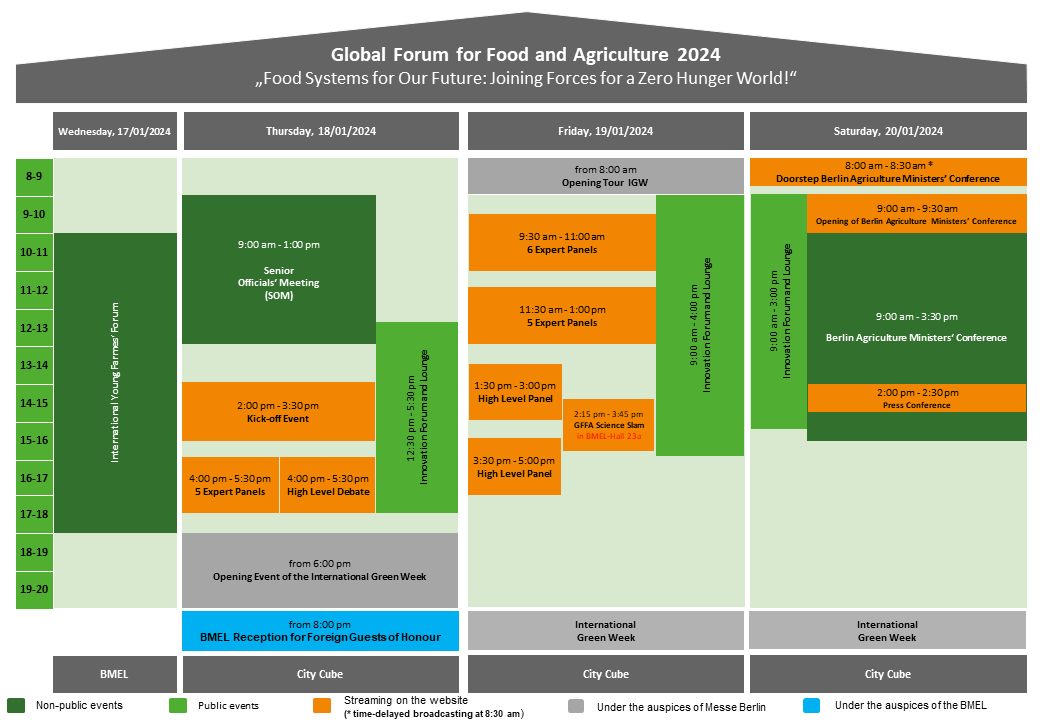 The four-day forum features a large number of events that provide an international audience of experts from the worlds of politics, business, science and civil society with an opportunity to address and reach consensus on issues and challenges relating to global agricultural policy and food security.